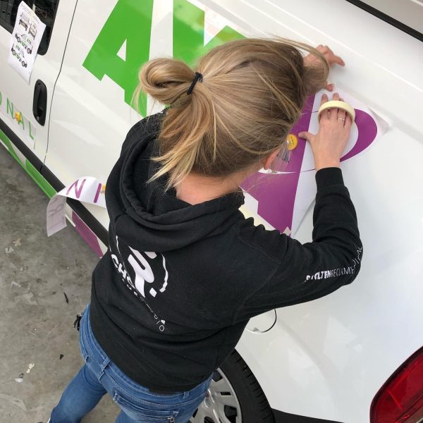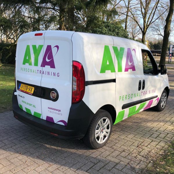 Fiat Doblo voorzien van belettering in hoogwaardige folie. Een opvallende, frisse bedrijfswagen als resultaat!